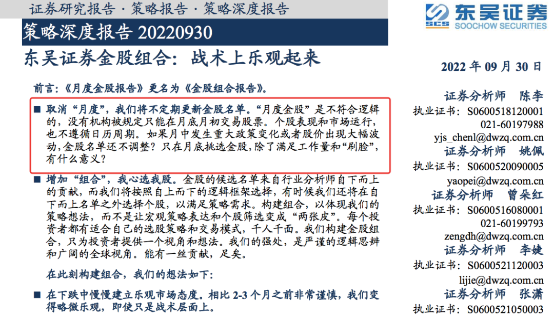 东吴证券在最新发布的策略报告中的“前言”部分,详细解释了取消“月度金股”的原因。