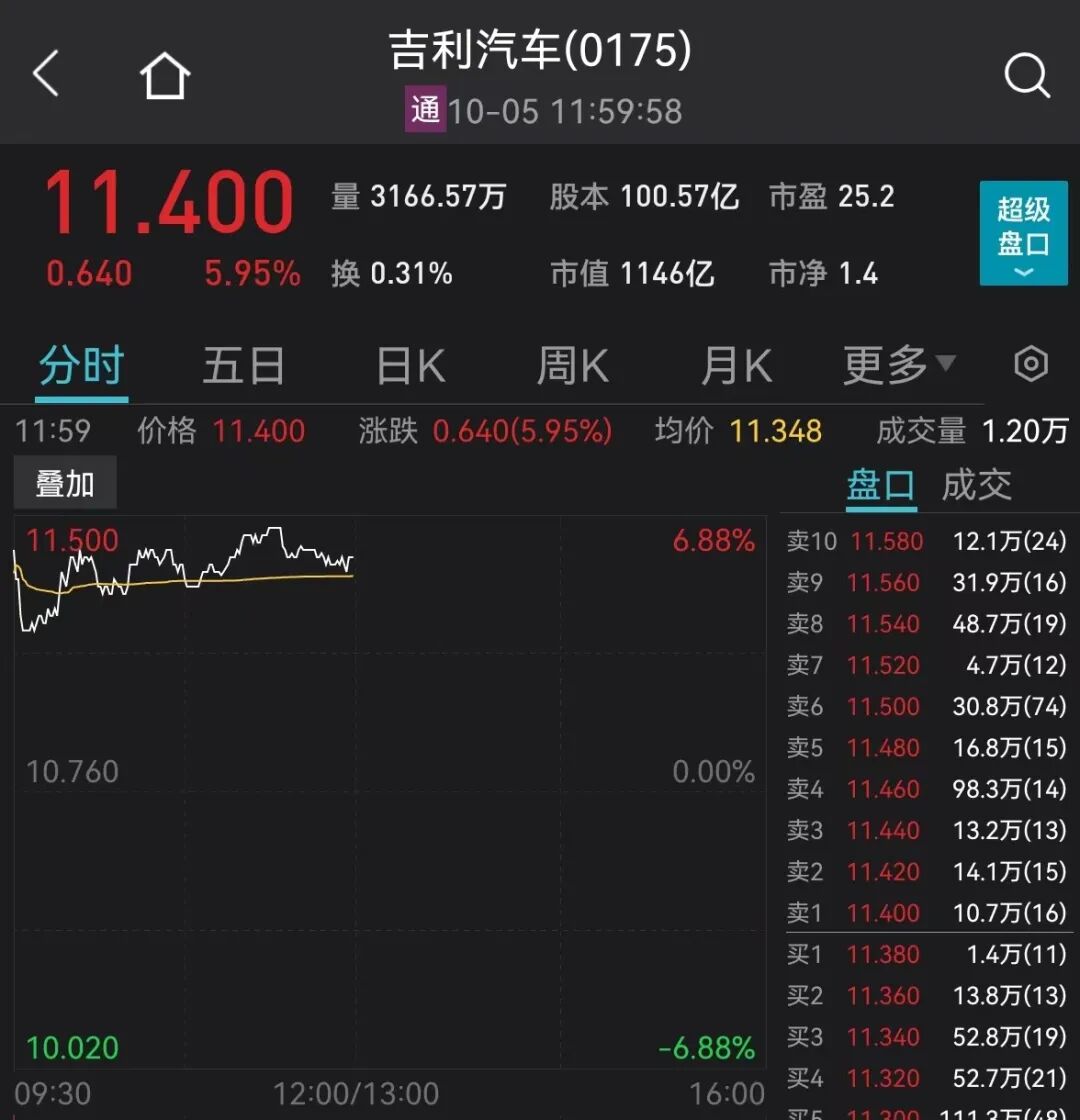 此外,刚刚收购了豪车阿斯顿·马丁的吉利汽车也大涨近6%。