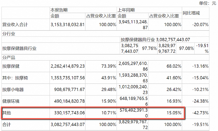 奥佳华以按摩器材生产制造服务商身份起家,公司具备同行业领先的可靠性强化试验技术、加速寿命试验技术和高应力筛选技术等测试平台,与北美、欧洲、东亚和东南亚地区领先健康产品品牌商HOMEDICS、ATEX、OGAWA、HOT、OSIM、CASADA、OTO等保持长期合作关系。今年上半年,奥佳华营业收入31.53亿元,其中保健按摩业务收入占比73.39%,同比提升5.37%。按摩椅是公司最主要的产品。