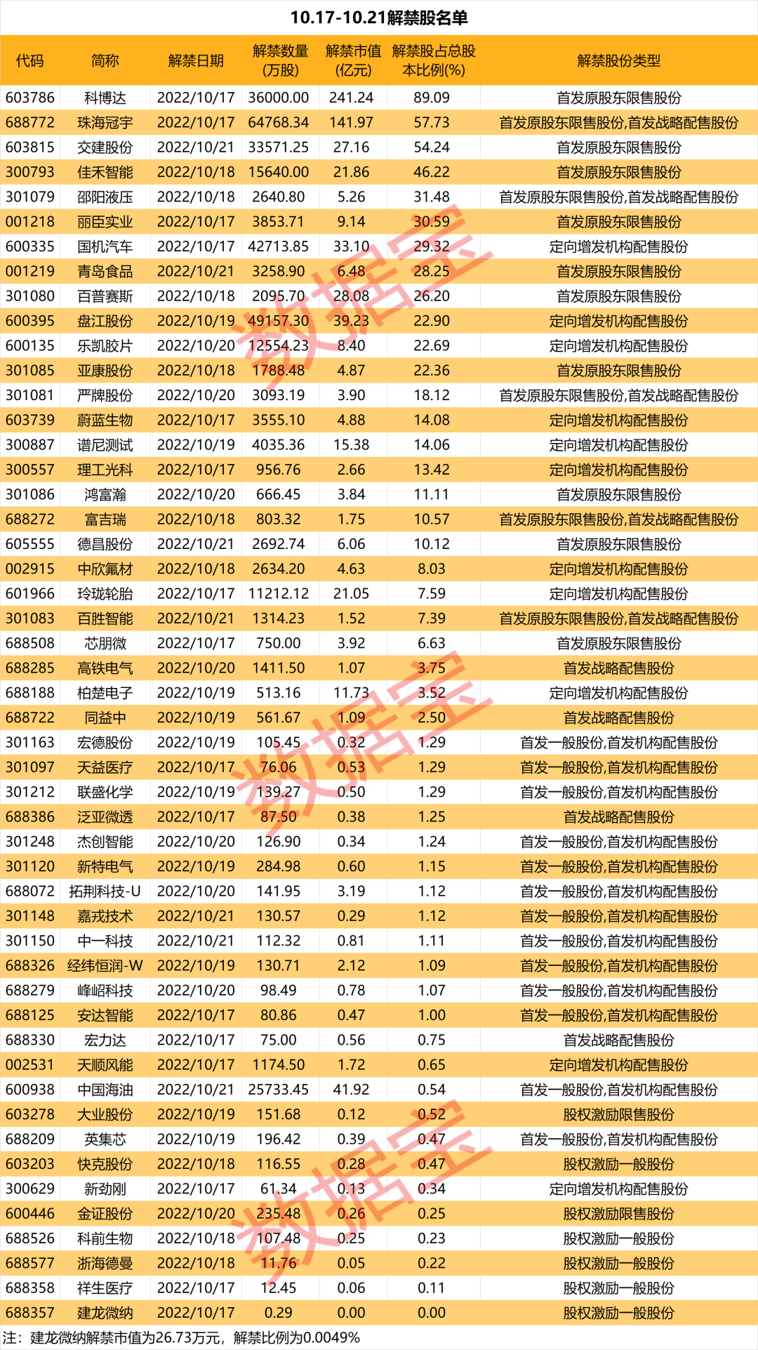 下周,科博达和珠海冠宇2股解禁市值均逾百亿。