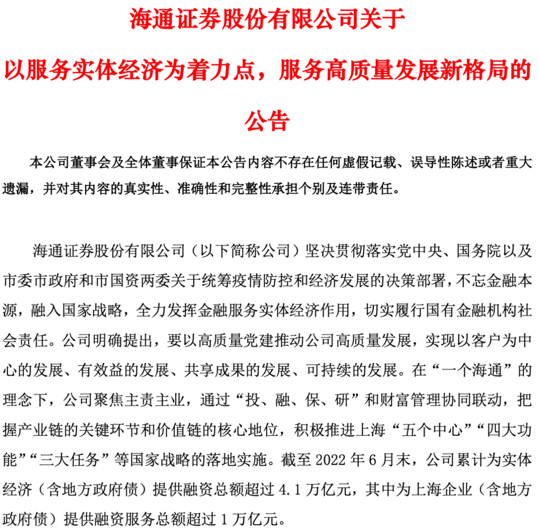 新时期新征程,五大头部券商共同喊话“服务实体经济”!