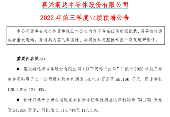 需要注意的是,斯达半导单三季度预计实现归母净利润2.41亿元-2.45亿元,同比增长114.10%-117.65%,环比增长23.38%-25.43%。从环比来看,其业绩高速增长趋势仍处于加速状态。