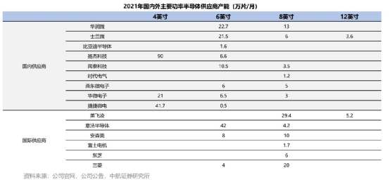 时代电气目前二期产能已接近24万片的设计产能。该公司日前公告,控股子公司中车时代半导体拟投资中低压功率器件产业化建设项目,项目投资总额约111.2亿元。其中包括分别用于新能源汽车领域以及新能源发电、工控、家电领域的年产36万片8英寸中低压组件基材产能。