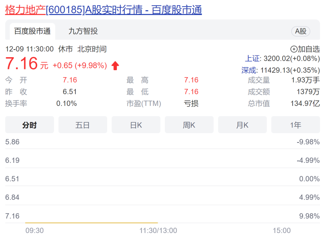 格力地产复牌一字涨停