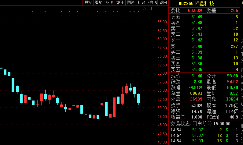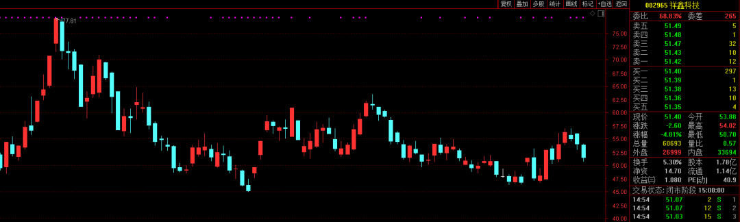 值得一提的是,祥鑫科技在今年中旬一度成为市场“业绩牛”的代表,该公司于7月初披露上半年业绩预增公告后,便开启上涨模式,并在今年8月一度攀升至77.81元/股的历史高点。从今年4月最低点算起,该股涨幅超300%。尽管这之后祥鑫科技股价有所回落,但最新51.40元/股的收盘价较年初时已经翻倍。