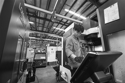 在位于浙江省诸暨市店口镇工业区的浙江万安科技股份有限公司数字化车间,工人在查看数控设备运行情况。 新华社记者 徐昱 摄