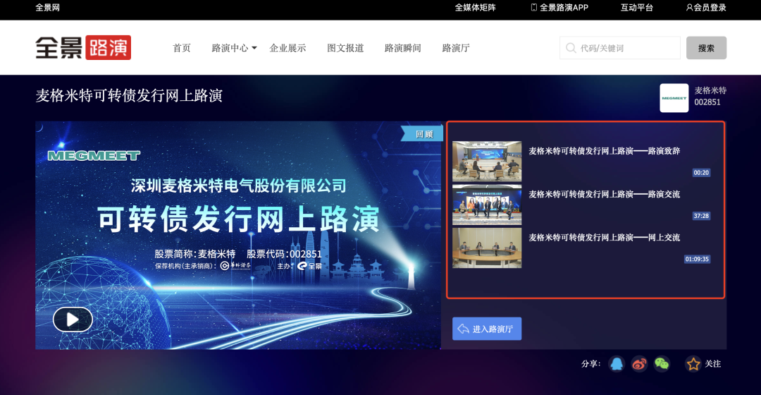 麦格米特可转债网上路演页面