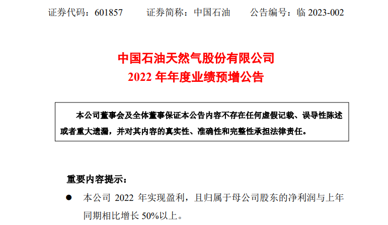中国石油表示,2022年,公司坚持低成本发展,主要成本费用指标得到有效控制,同时得益于国际原油价格上涨及提质增效工作深入推进,公司年度经营效益同比大幅增长。