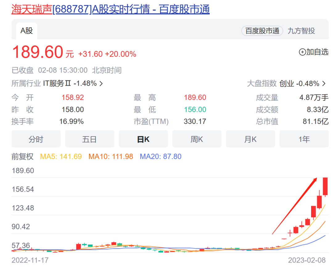 ChatGPT概念股炒作未休,尤其是海天瑞声和云从科技的股价在春节后短短8个交易日实现翻倍,成为兔年首批翻倍牛股。2月8日,两家公司均收到来自上交所的监管工作函。同时,2月7日,汉王科技也收到深交所关注函。