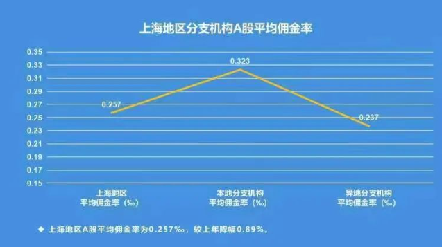 上海市证券同业公会数据显示,2022年上海地区A股平均佣金率为万分之2.57,相比2021年的万分之2.8显著下降。其中,本地营业部佣金率为万分之3.23,异地营业部佣金率为万分之2.37。