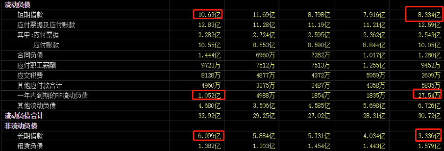 其中几个主要负债科目来看,短期负债为10亿元,而上年同期为8.33亿元;一年内到期的非流动负债为1.05亿元,而上年同期仅有27万元;长期借款6.09亿元,上年同期为3.33亿元。公司货币资金为8.539亿元,短期债务覆盖能力偏弱。