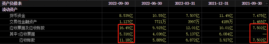 除了负债外,公司另一个风险则是应收账款。2022年三季报公司应收票据为5.31亿元,而2021年同期为0;应收账款为11.18亿元,2021年同期为7.5亿元,增长49%。