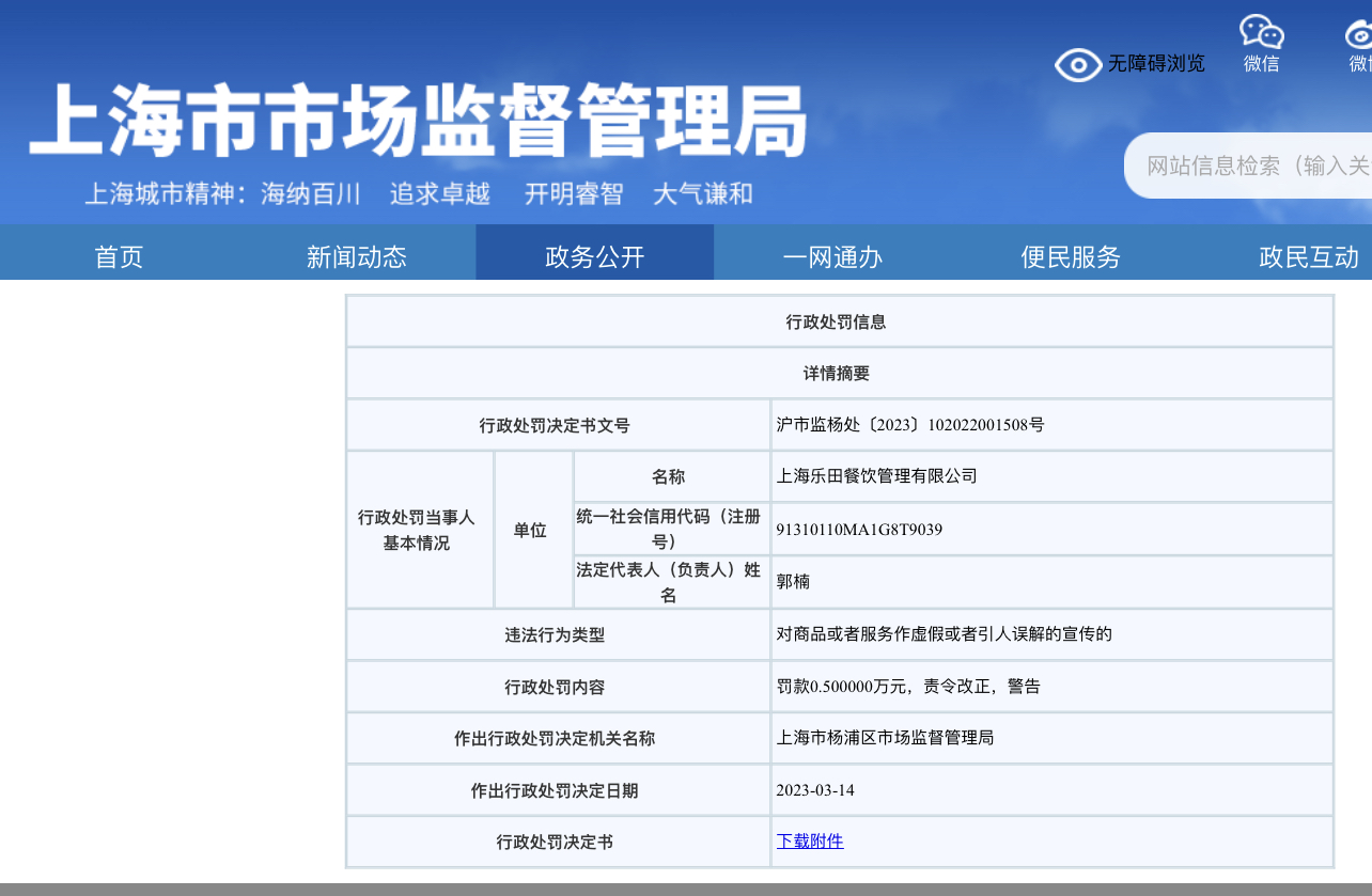 第一财经记者登录上海市市场监督管理局官方网站,也查到了同样的行政处罚内容。