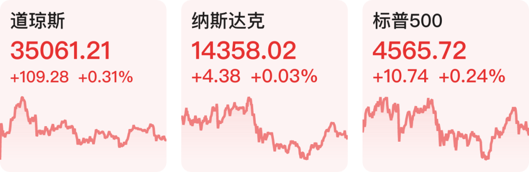 美股三大指数集体收涨,道指涨0.31%,纳指涨0.03%,标普500指数涨0.24%。热门中概股多数上涨,纳斯达克中国金龙指数涨0.69%。富途控股涨超6%,爱奇艺涨超5%,小鹏汽车涨超4%,微博、蔚来涨超2%,哔哩哔哩、阿里巴巴涨超1%,京东、理想汽车、腾讯音乐小幅上涨。
