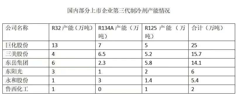 根据公开资料,巨化股份、三美股份、永和股份、中欣氟材等,各自拥有的氢氟酸产能约10万吨、13.1万吨、8.5万吨,5万吨。今年7月底,规划产能30万吨的内蒙古金鄂博氟化工有限公司一期项目(12万吨)已经投料试车,其中,金石资源持股51%。