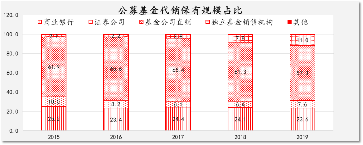 图表 3公募基金代销保有规模在各渠道的占比(数据来源:基金业协会)