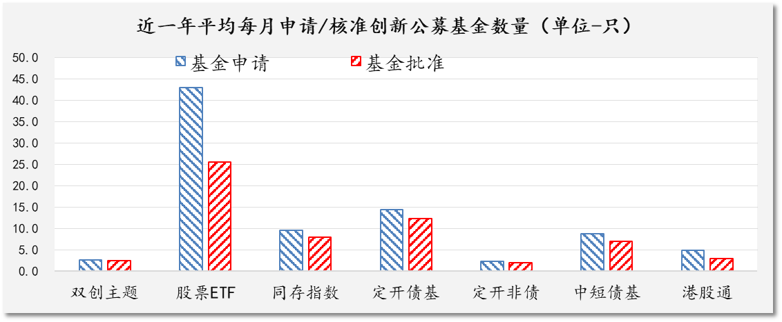 图表 6公募基金创新型产品近一年申请/核准数量(数据来源:证监会)