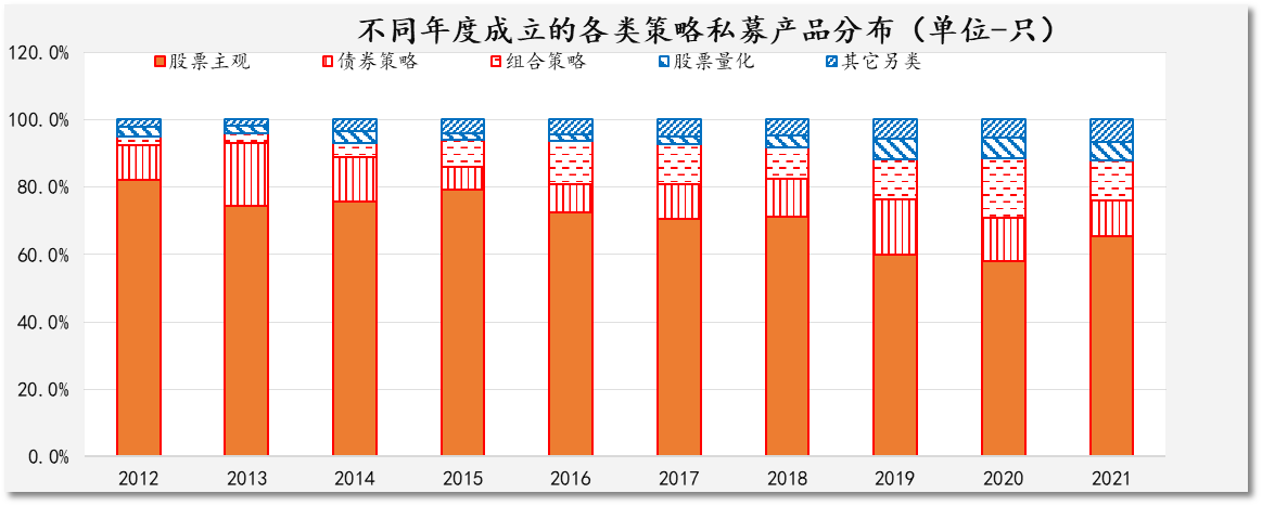 图表 7不同年度成立的各类策略私募产品数量(数据来源:朝阳永续数据库)