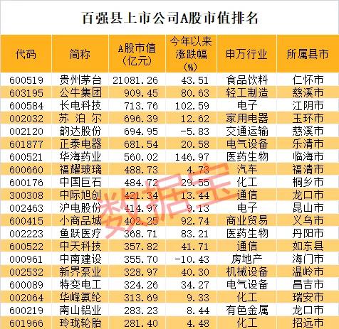 百强县A股公司市值超4.4万亿,制造业领域居多