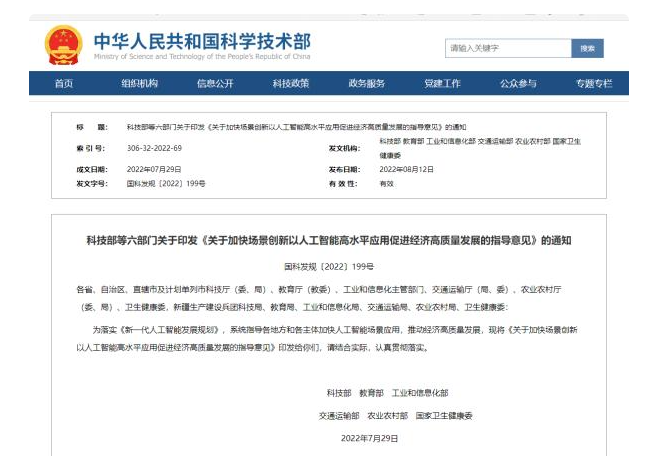 科技部等六部门印发《关于加快场景创新以人工智能高水平应用促进经济高质量发展的指导意见》的通知(以下简称《指导意见》),《指导意见》鼓励在制造、农业、物流、金融、商务、家居等重点行业深入挖掘人工智能技术应用场景,促进智能经济高端高效发展。制造领域优先探索工业大脑、机器人协助制造、机器视觉工业检测、设备互联管理等智能场景。