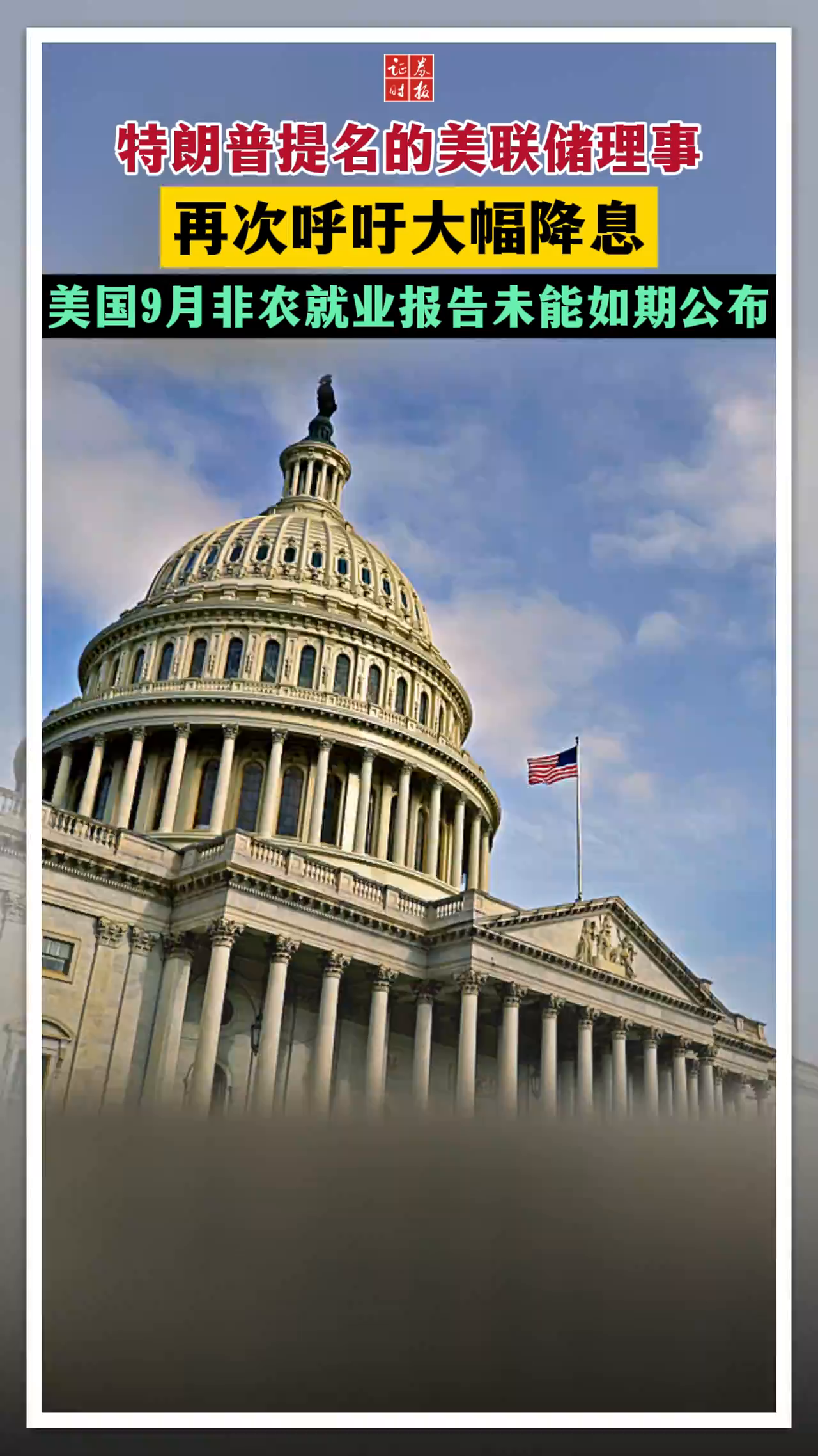 特朗普提名的美联储理事再次呼吁大幅降息 美国9月非农就业报告未能如期公布