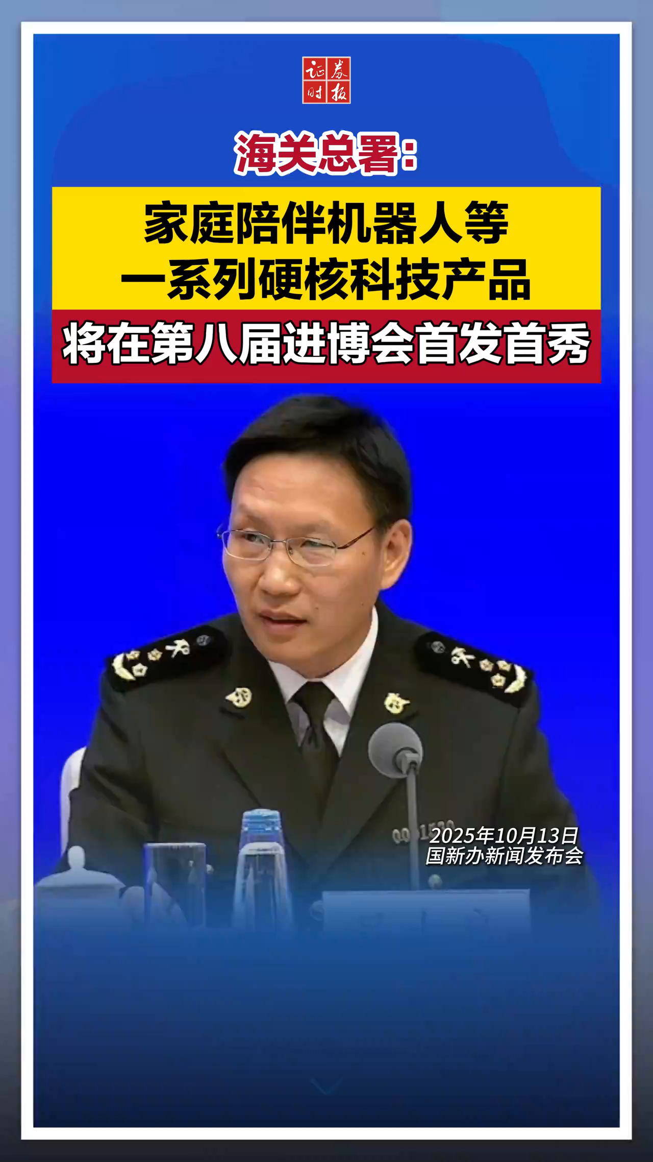 海关总署: 家庭陪伴机器人等一系列硬核科技产品,将在第八届进博会首发首秀