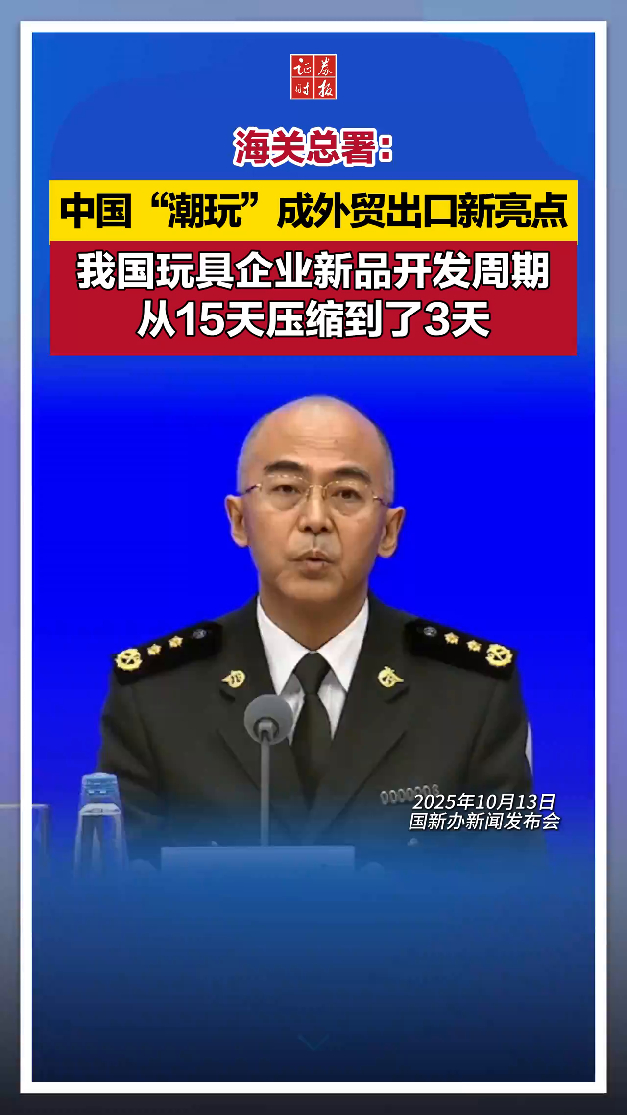 海关总署:中国“潮玩”成外贸出口新亮点,我国玩具企业新品开发周期从15天压缩到了3天