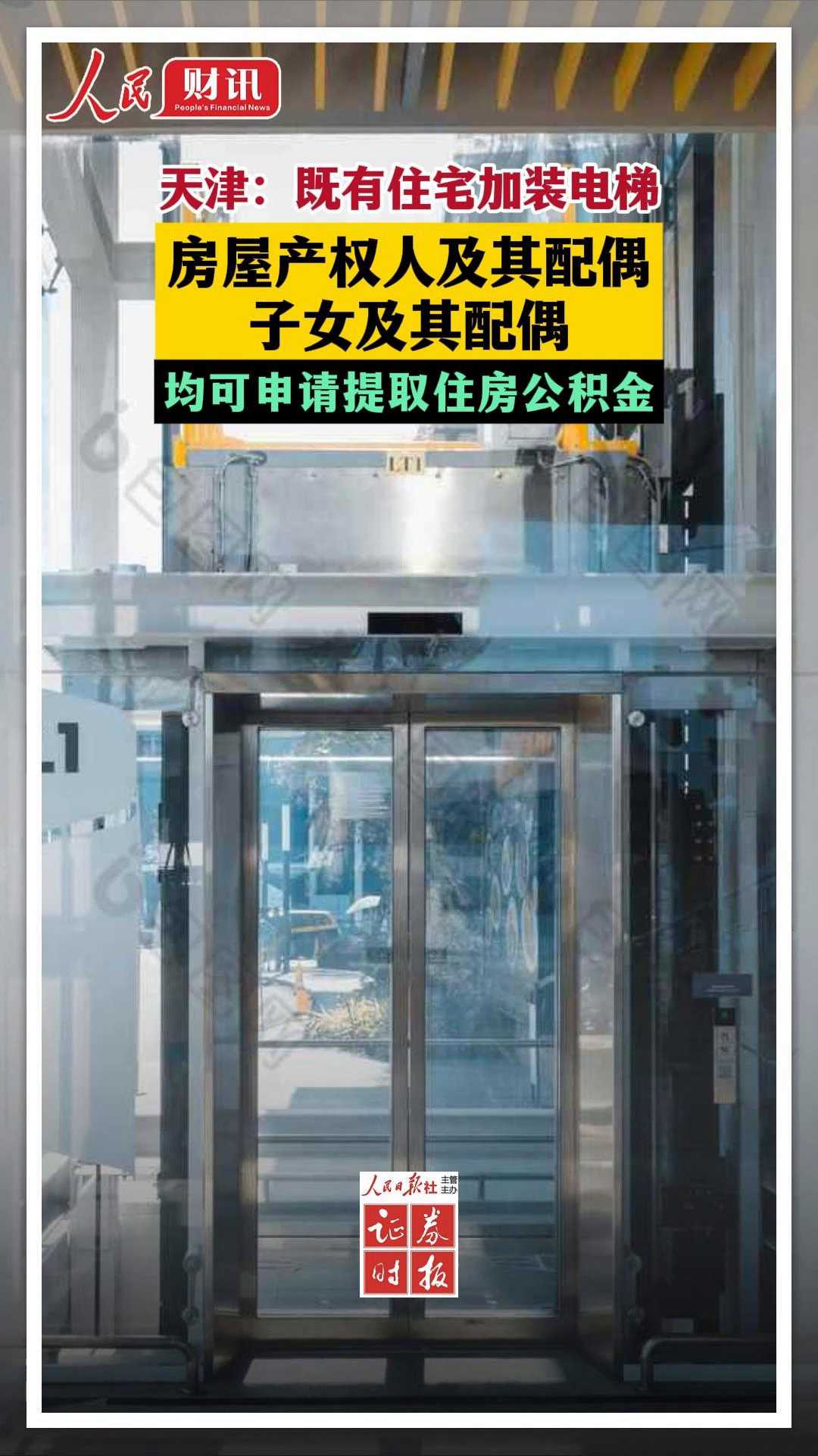 天津:既有住宅加装电梯,房屋产权人及其配偶、子女及其配偶,均可申请提取住房公积金