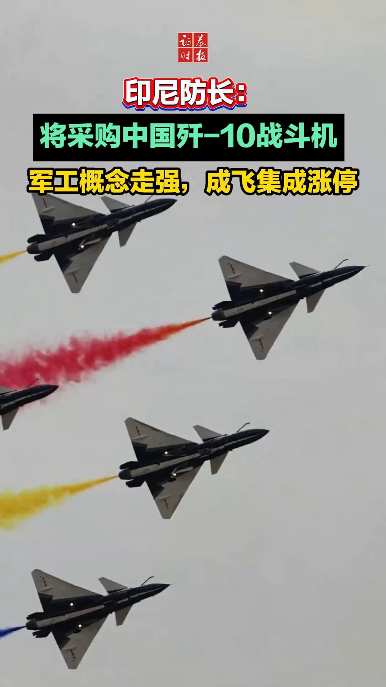 印尼防长:将采购中国歼-10战斗机,军工概念走强,成飞集成涨停