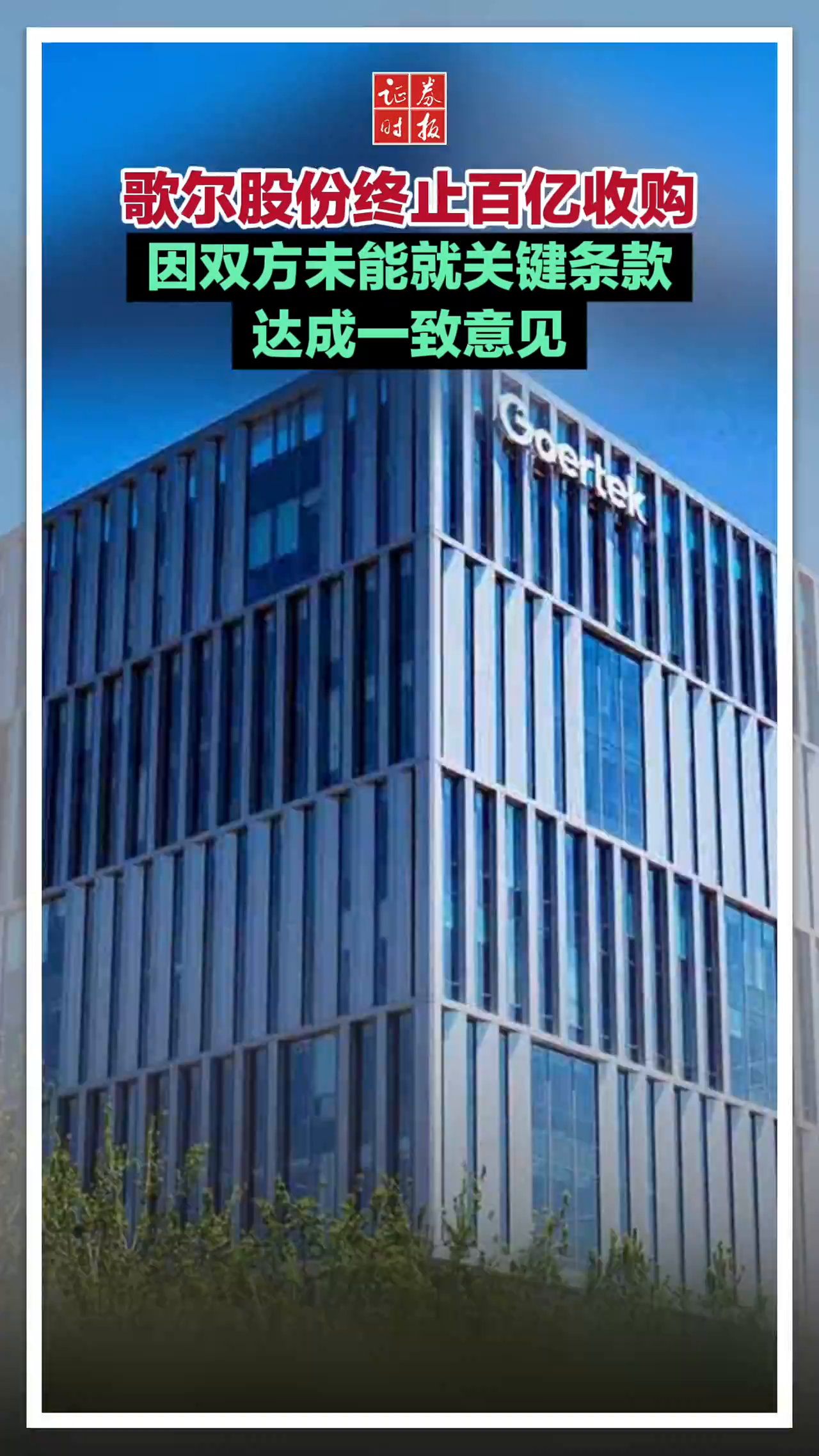 歌尔股份终止百亿收购 因双方未能就关键条款达成一致意见