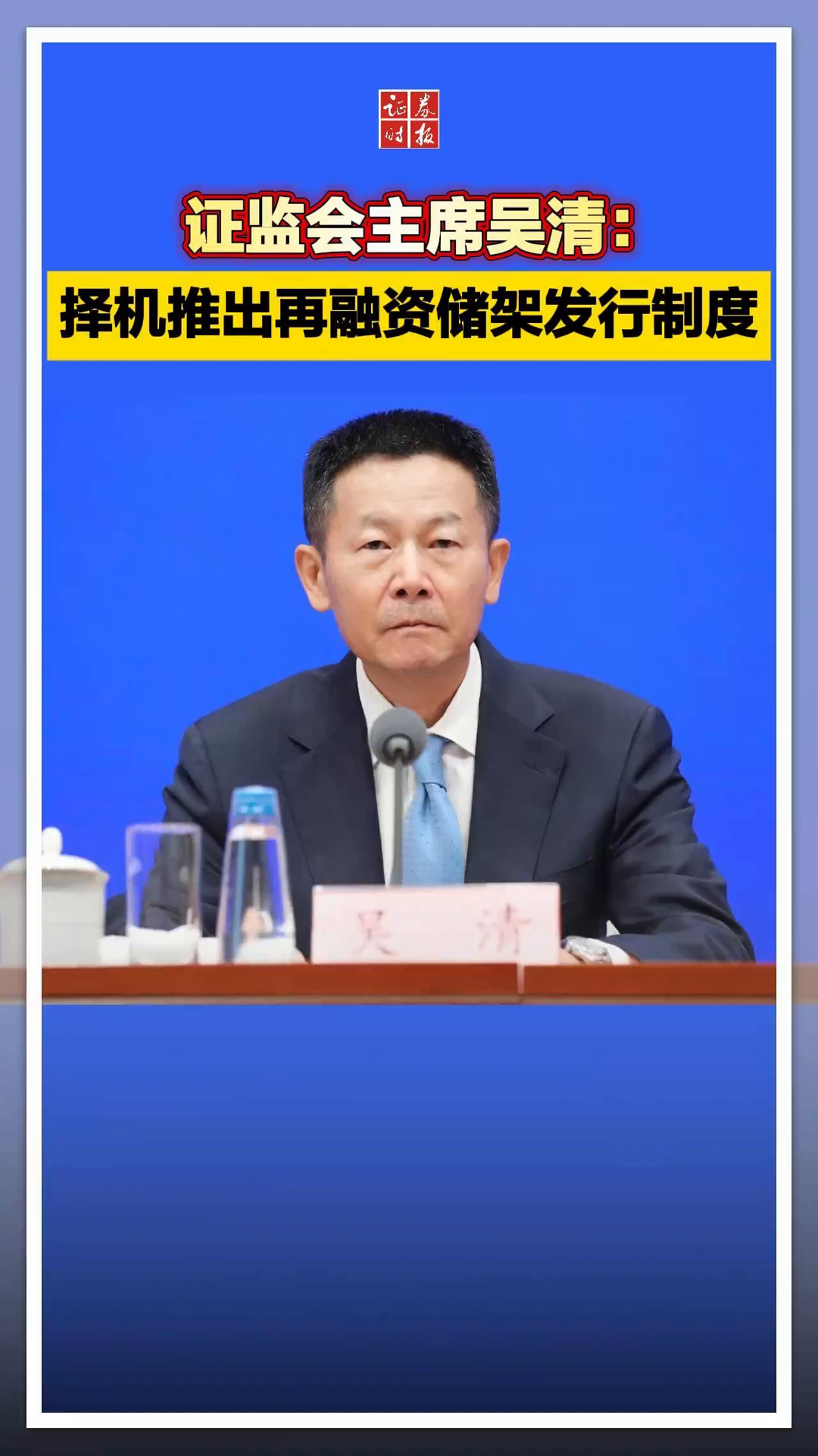 证监会主席吴清:择机推出再融资储架发行制度