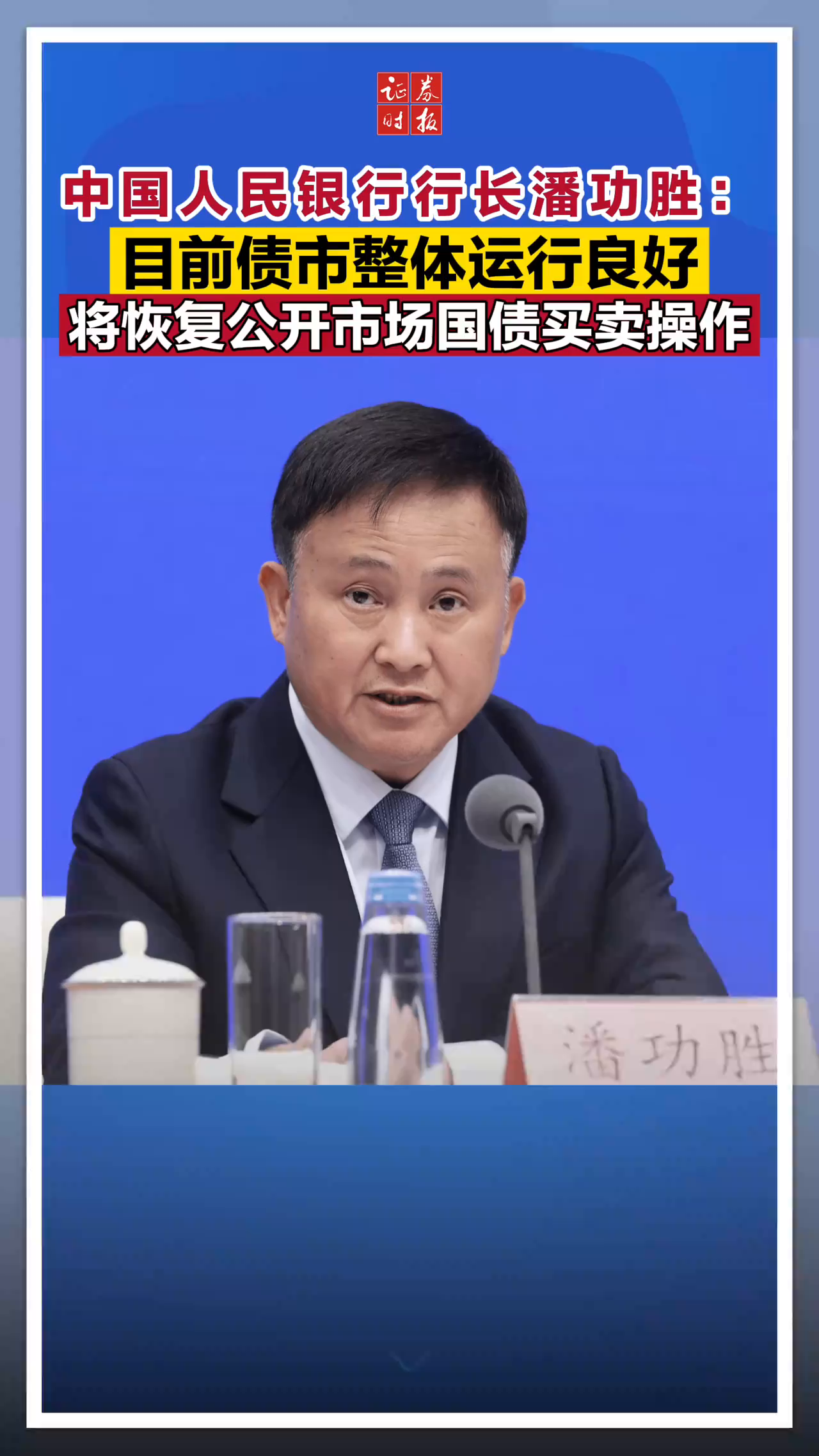 中国人民银行行长潘功胜:目前债市整体运行良好,将恢复公开市场国债买卖操作