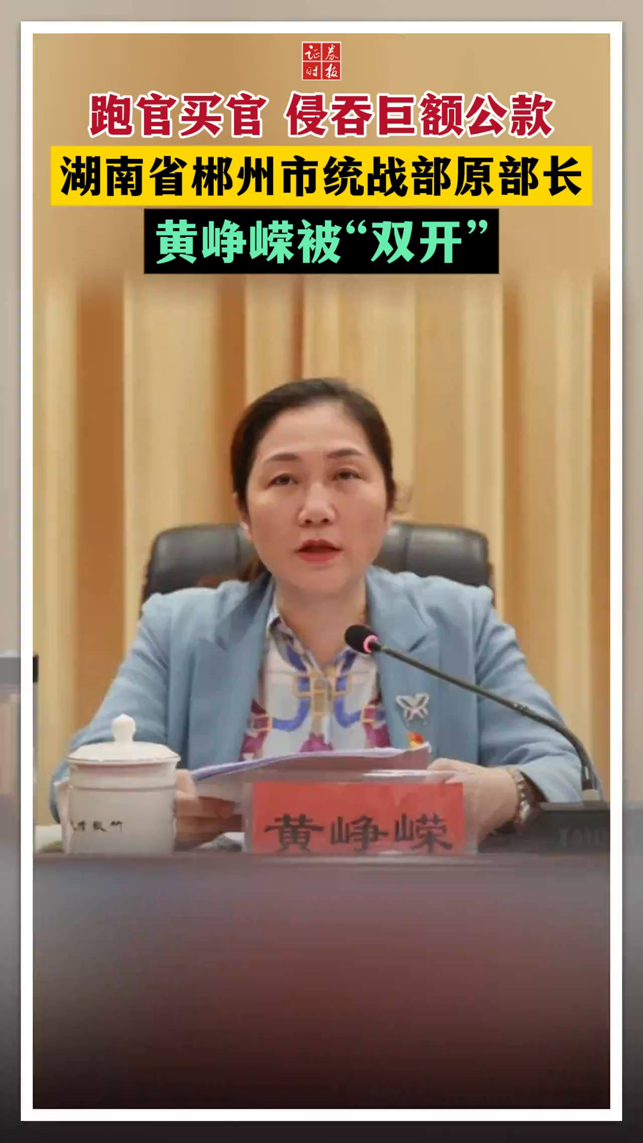 跑官买官 侵吞巨额公款 湖南省郴州市统战部原部长黄峥嵘被“双开”