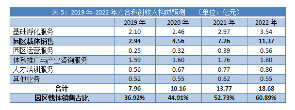 力合科创“费力”解释其不是创投公司的时候,一个重要的证明是其提供的硬件、软件服务业务的收入贡献将在上市后超过投资业务。在这些未来着力发展的业务中,占比最大的是园区载体销售收入。说得通俗一点,就是对外出售创业园区的房产。
