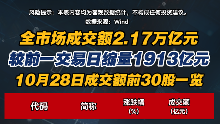 全市场成交额2.17万亿元 较前一交易日缩量191...