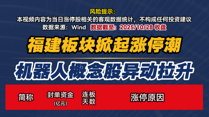 福建板块掀起涨停潮 机器人概念股异动拉升