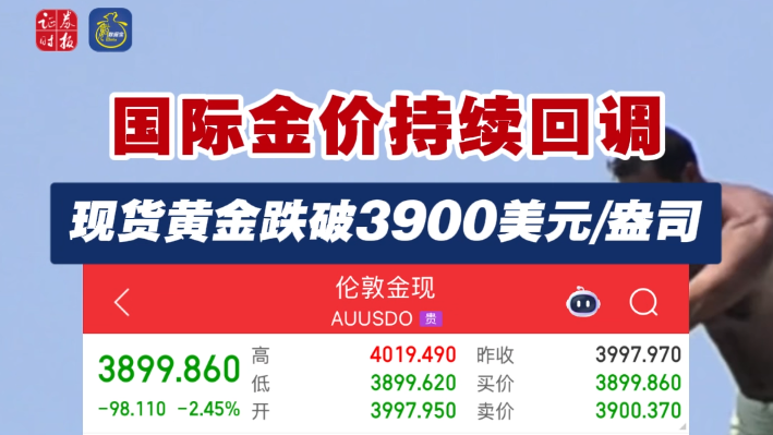 国际金价持续回调 现货黄金跌破3900美元/盎司