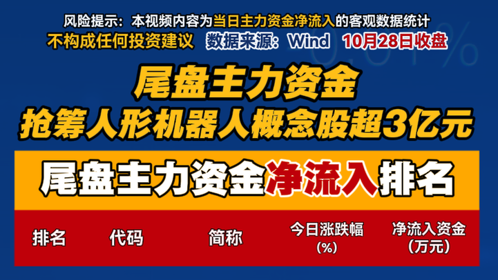 尾盘主力资金抢筹人形机器人概念股超3亿元