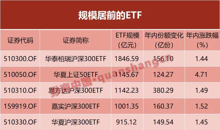 此外,华夏沪深300ETF最新规模也已突破915亿元,年内份额增长约150亿份,距离成为第五只千亿ETF仅一步之遥。