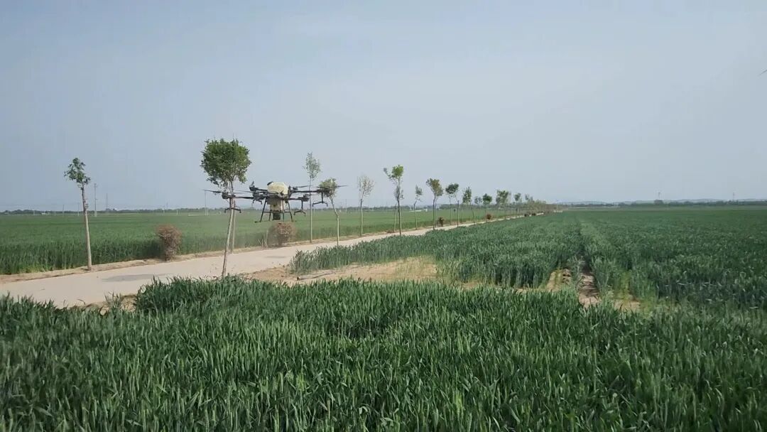 对于扬花期的麦苗而言,病虫害防治是关键。不同与以往人工施药防虫的老方法,如今田间精准施药和施肥更多得采用了节时省工的无人机喷洒方式。