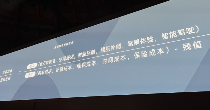 李斌表示,之所以提出这个价值公式,核心原因在于乐道品牌主张为用户提供“合家欢乐,持家有道”的体验,既提供良好的用车体验,也能降低用户全生命周期的用车成本。