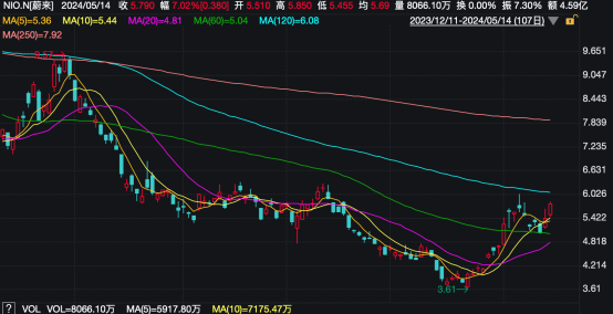 受此消息影响,美股盘前,蔚来(NIO)股价大涨,涨幅超7%,最新市值120.8亿美元。最近20个交易日内,蔚来股价持续拉涨,累计涨幅超过38%。