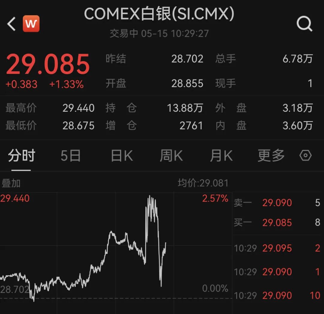 黄金、白银也表现强势。