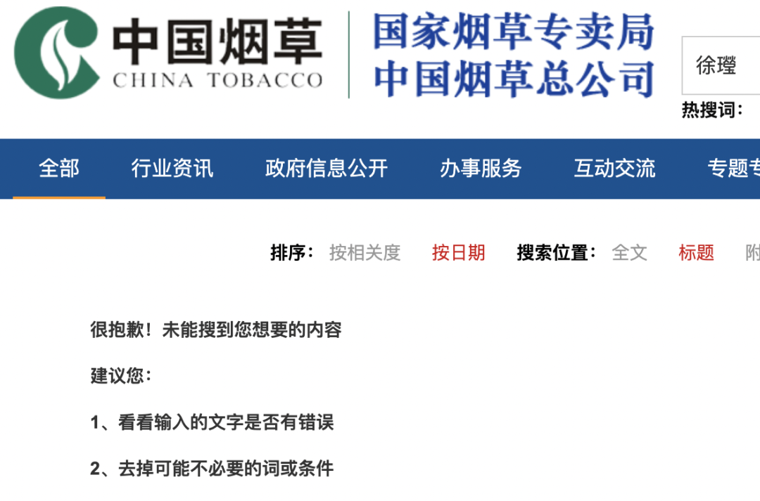 目前国家烟草专卖局已搜索不到徐㼆相关信息。