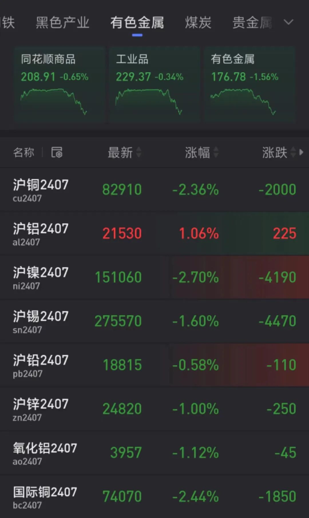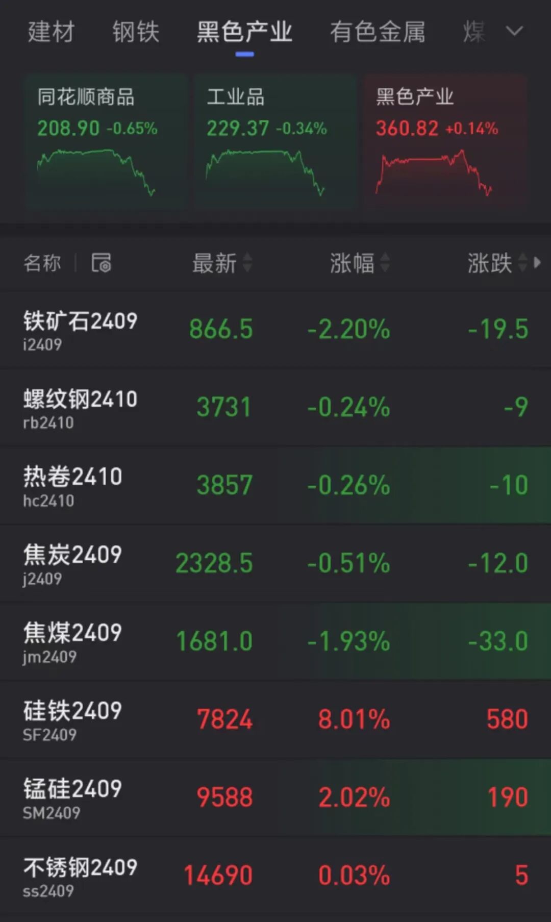 午后,有色跳水,截至发稿,沪铜、沪镍、沪锡、沪锌、氧化铝主连均跌超1%。硅铁、锰硅主力合约涨幅分别为8.01%、2.02%。