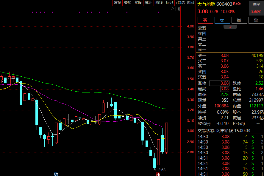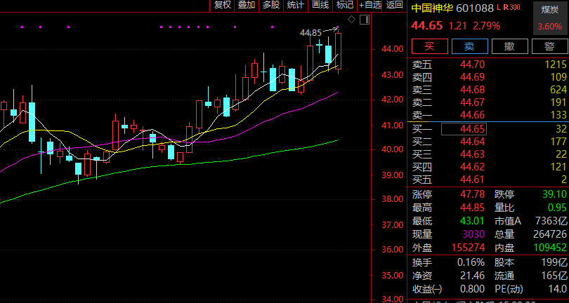 大有能源直线拉涨停,近3个交易日两度涨停;陕西煤业创历史新高(复权,下同);中国神华创2008年1月以来逾16年新高;晋控煤业则创2011年4月以来13年新高。