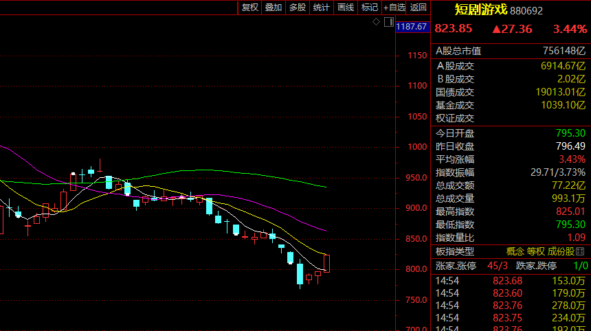 热点方面,游戏股今日全线走强,短剧游戏方向领涨,板块指数放量上涨3.44%。浙版传媒、思美传媒等强势涨停,因赛集团、引力传媒、慈文传媒等涨幅居前。