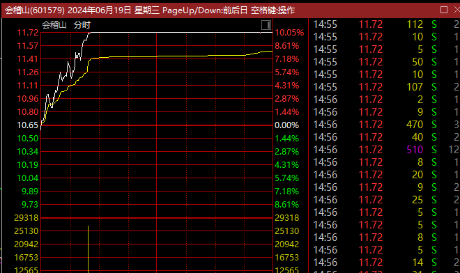 6月19日上午,知名老字号会稽山(601579)的股价突然涨停。截至收盘,公司股价收盘于11.72元/股,仍有1万多手封单,牢牢封死涨停。
