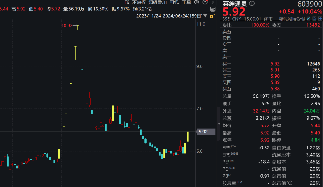 6月24日晚间,莱绅通灵发布异动公告称,公司及控股股东、实际控制人马峻不存在筹划涉及公司的重大资产重组、股份发行、重大交易类事项、业务重组、股份回购、股权激励、破产重整、重大业务合作、引进战略投资者等重大事项。