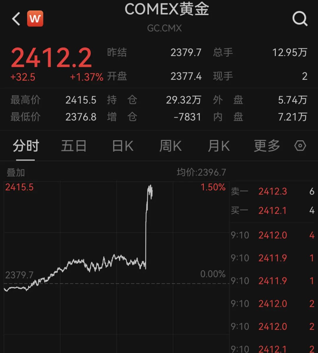而黄金、白银直线暴涨。黄金更是突破2400美元/盎司。